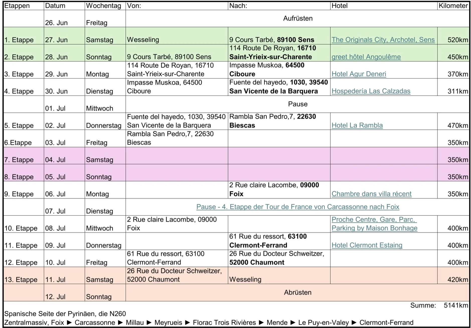 Ein paar Etappen in den Pyrenäen und im Zentralmassiv halte ich mir noch offen, um spontan auf Wetter und Lust reagieren zu können.