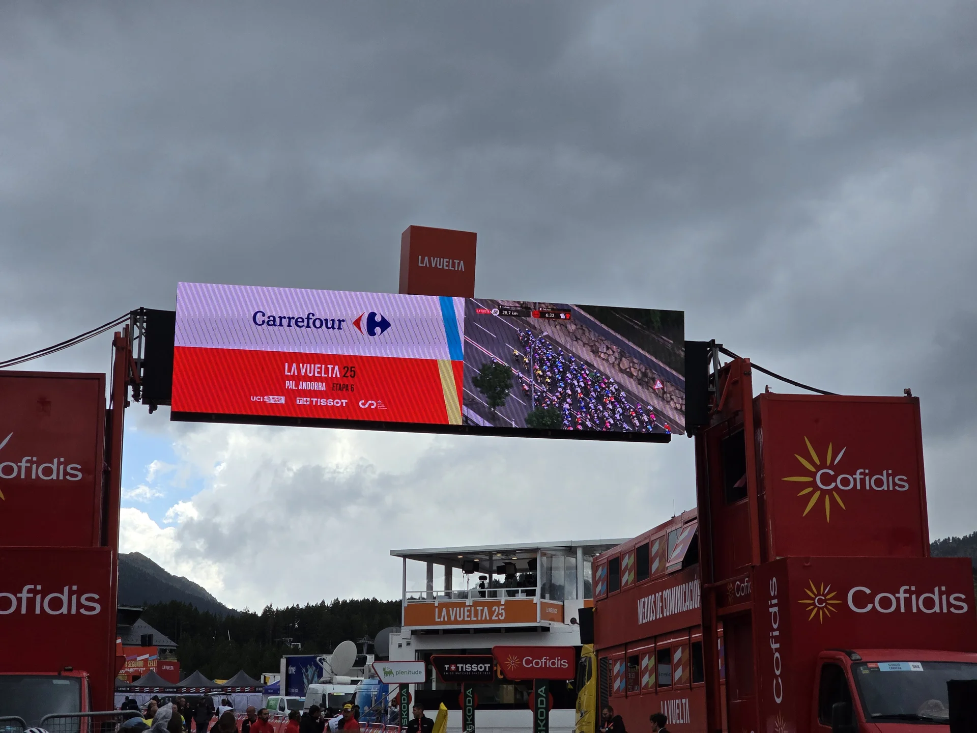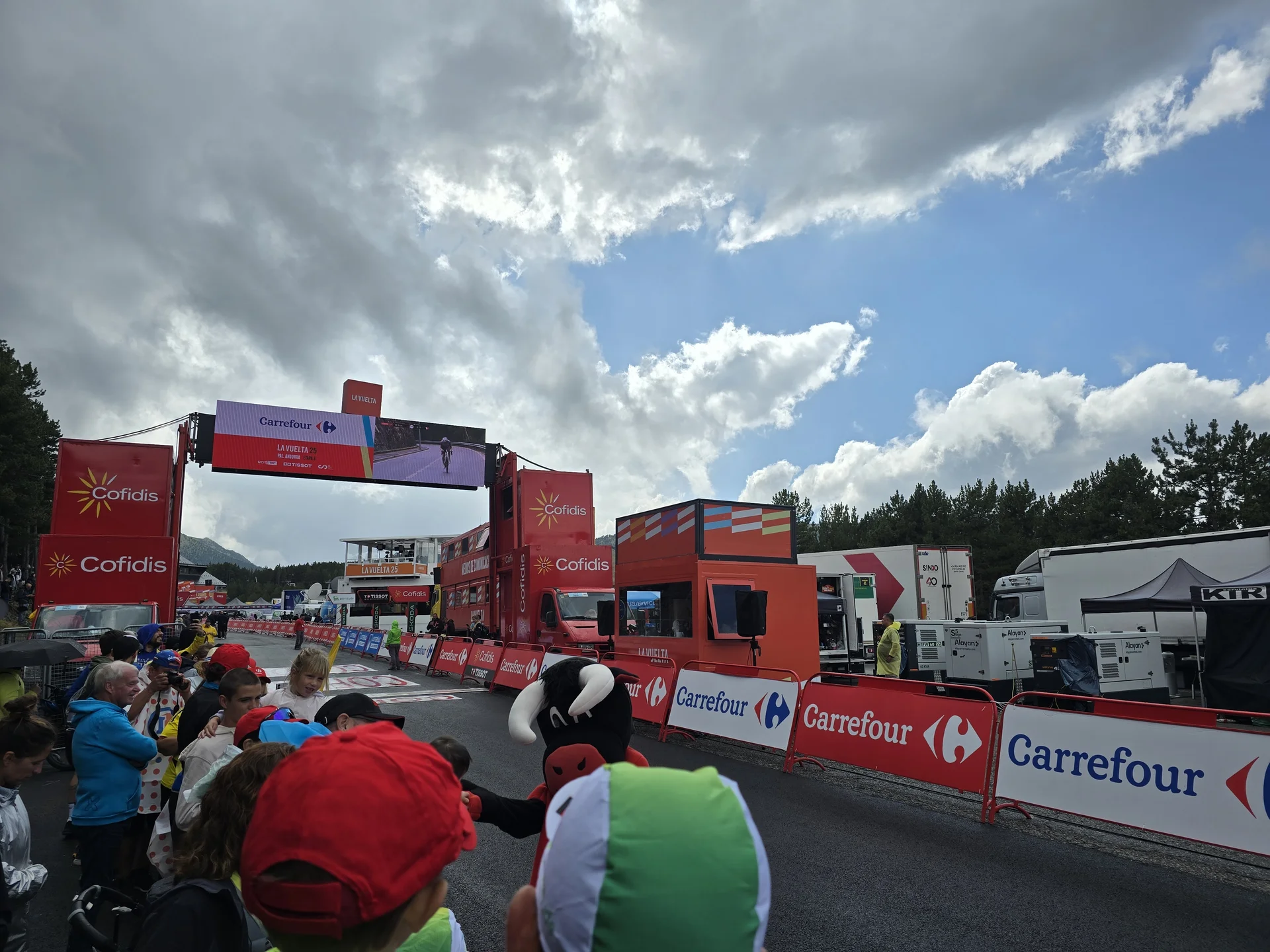 Am Morgen des 28. August verwandelte sich La Massana in eine Bühne: Absperrgitter klirrten, Flaggen flatterten, Zuschauer strömten aus allen Gassen. Die Atmosphäre vibrierte. Ich nahm die Seilbahn hinauf, um den besten Blick auf das Ziel und die Strecke zu haben. Unter mir zog das kleine Bergstädtchen vorbei, während ich höher stieg – bis ich schließlich den perfekten Platz fand, um Teil dieses Spektakels zu werden.