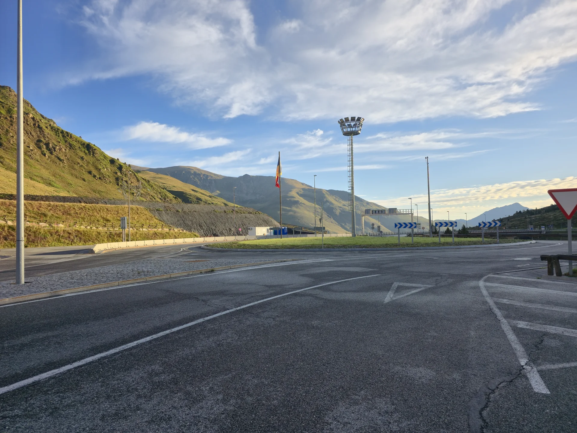 Der Port d’Envalira (auch Col d’Envalira) ist der höchste Straßen-Gebirgspass der Pyrenäen. Er befindet sich auf einer Höhe von 2408 m in Andorra und verbindet das Tal der Ariège im Norden mit dem der Valira im Westen. Der Pass hat keine Wintersperre und ist somit die höchstgelegene ganzjährig befahrbare Passstraße Europas. Von der Passhöhe kann man durch einen 2860 m langen, mautpflichtigen Tunnel auf 2060 m Höhe ausweichen, doch ich wählte den offenen Weg. Im Sturm, Regen und dichten Verkehr kroch ich kaum schneller als 10 km/h hinter einem Cola-LKW her, während jede Kurve neue Kälteschauer schickte und wertvolle Zeit verstrich. Rückblickend wäre es klüger gewesen, den Tunnel d’Envalira zu nehmen – doch nur so kann ich nun stolz sagen, einmal selbst über den höchsten Pass der Pyrenäen gefahren zu sein.