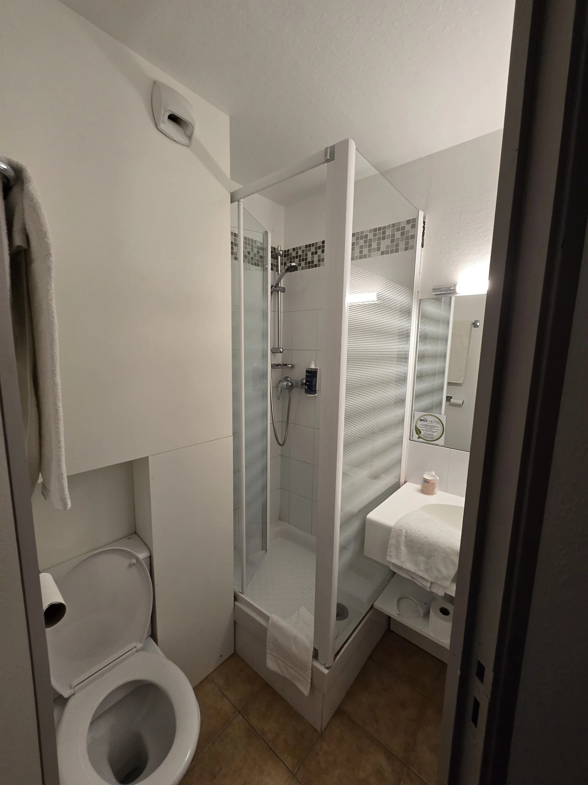 In Mende kehrte ich in das Brit Hotel Confort Deltour Mende ein – „enttäuschender Aufenthalt mit schlechtem Preis-Leistungs-Verhältnis. Empfang unfreundlich, Zimmer muffig, Schimmel in der Dusche, laute Hauptstraße. Frühstück qualitativ enttäuschend – gepackter Käse, nur trinkbarer Kaffee. Keine Entschuldigung vom Management. Kein Wiederkommen!“