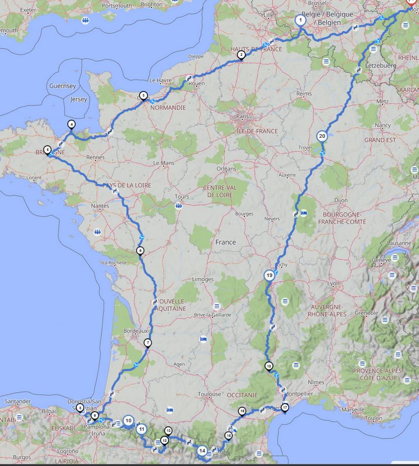 Nach intensiver Recherche, Abwägung und einer ordentlichen Portion Vorfreude ist es nun soweit: Die Grobplanung für mein nächstes Motorradabenteuer steht! Die Route führt mich durch einige der schönsten und spannendsten Regionen Frankreichs und Spaniens – mit spektakulären Landschaften, legendären Straßen und einer ordentlichen Portion Kurvenspaß.